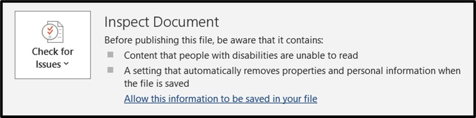 Just to be clear, this process removes personal data from the file properties, but if you have written personally identifying information within the actual text of your document, you will need to remove this manually.